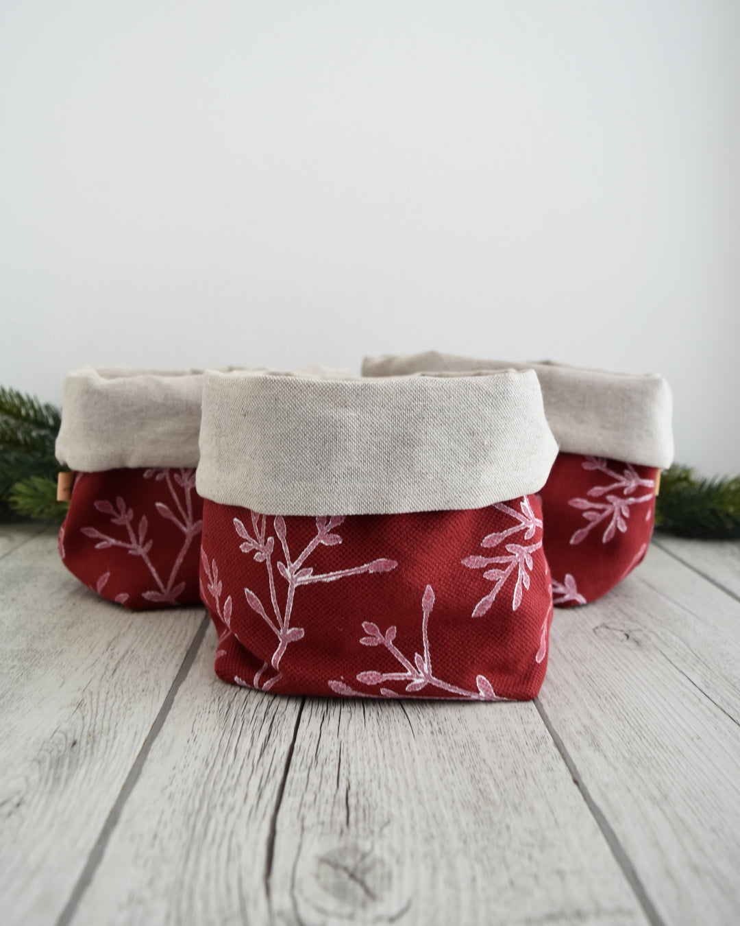 Un cestino porta pane o dolci di colore Rosso di vino è l'idea giusta, sa di festività ma non troppo.