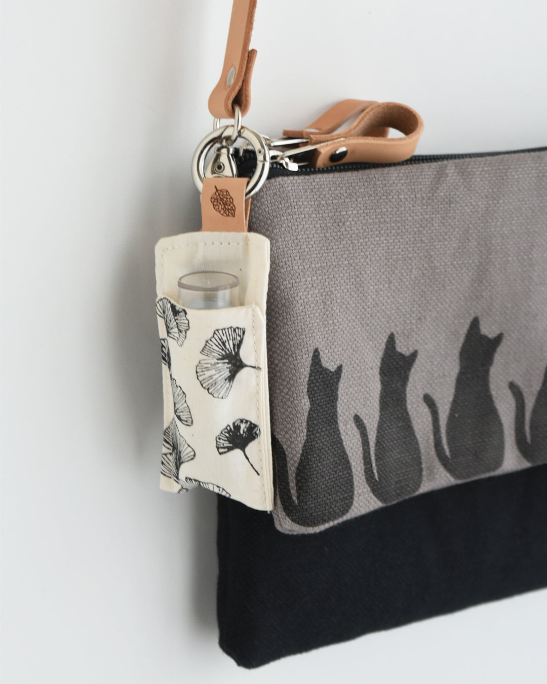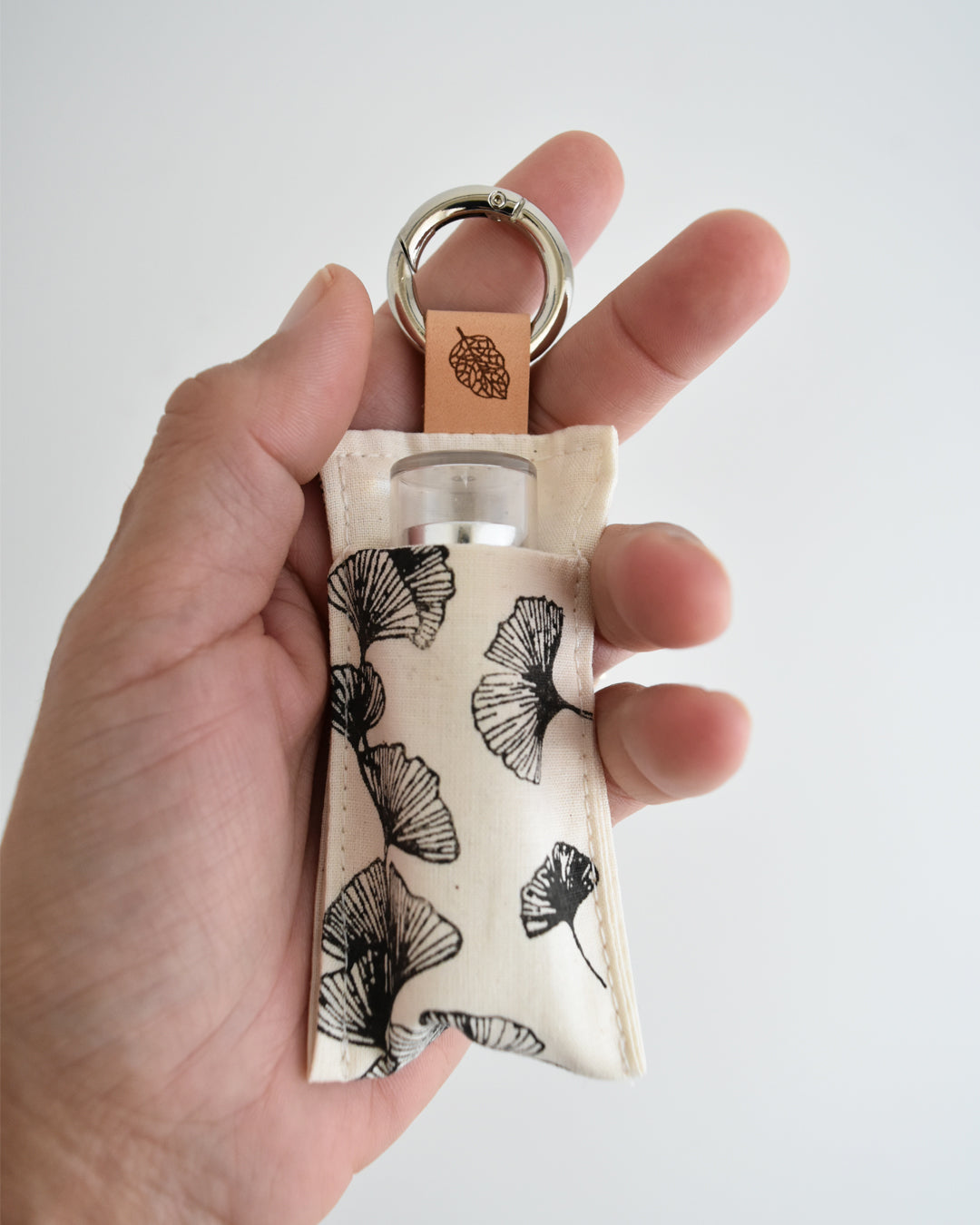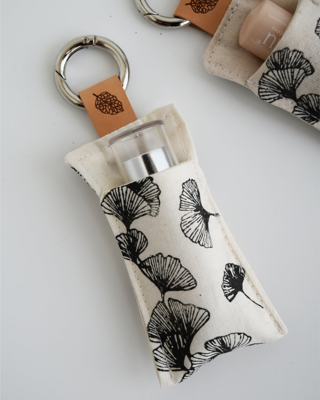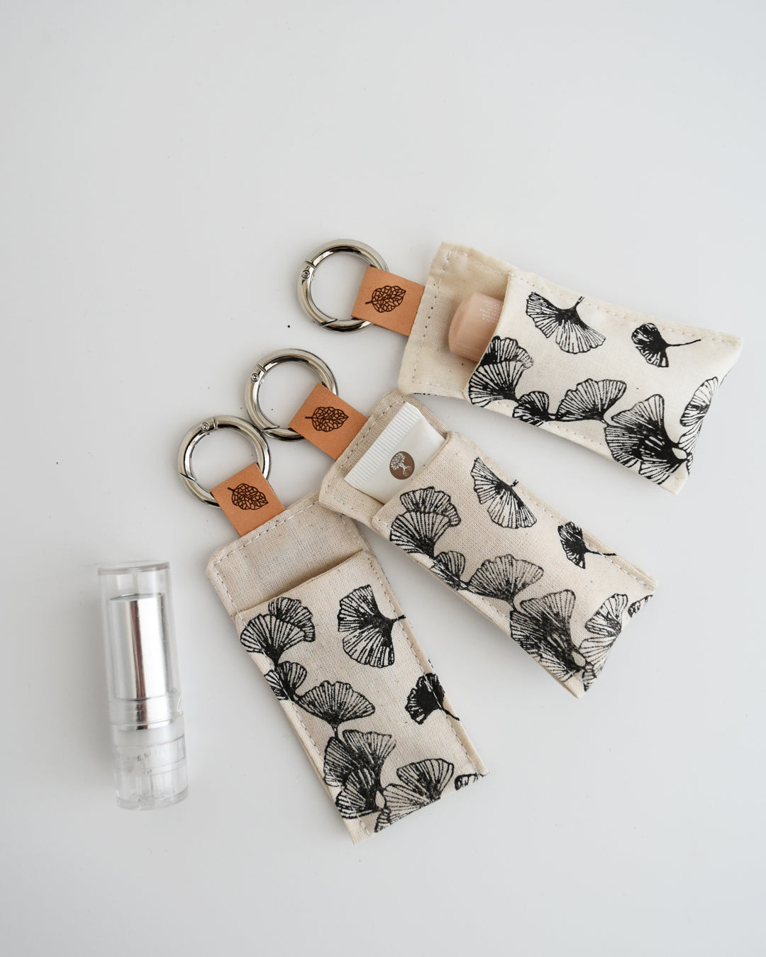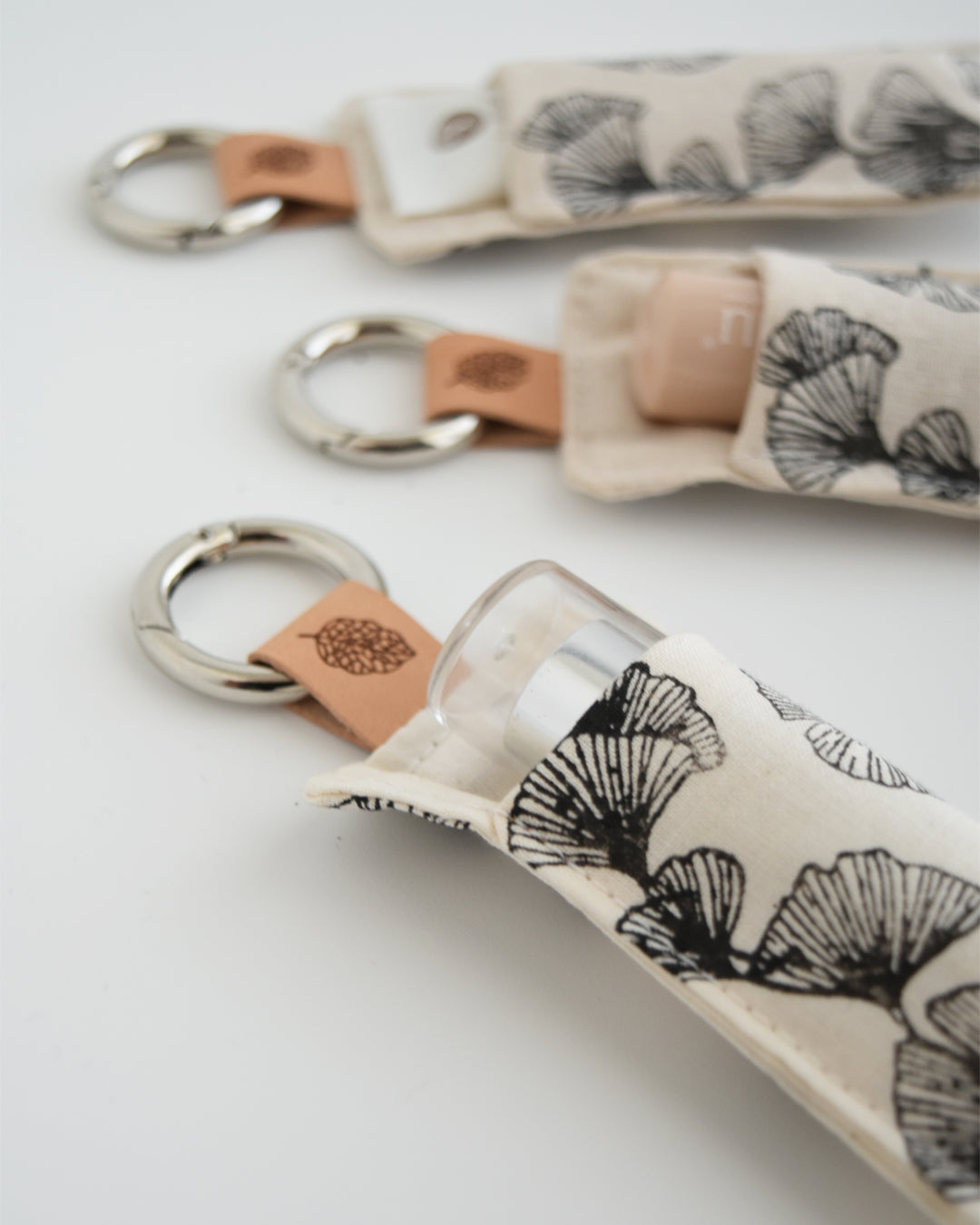 Piccolo, pratico e delicato: questo portachiavi in cotone stampato a mano custodisce il tuo burrocacao preferito, sempre a portata di mano.