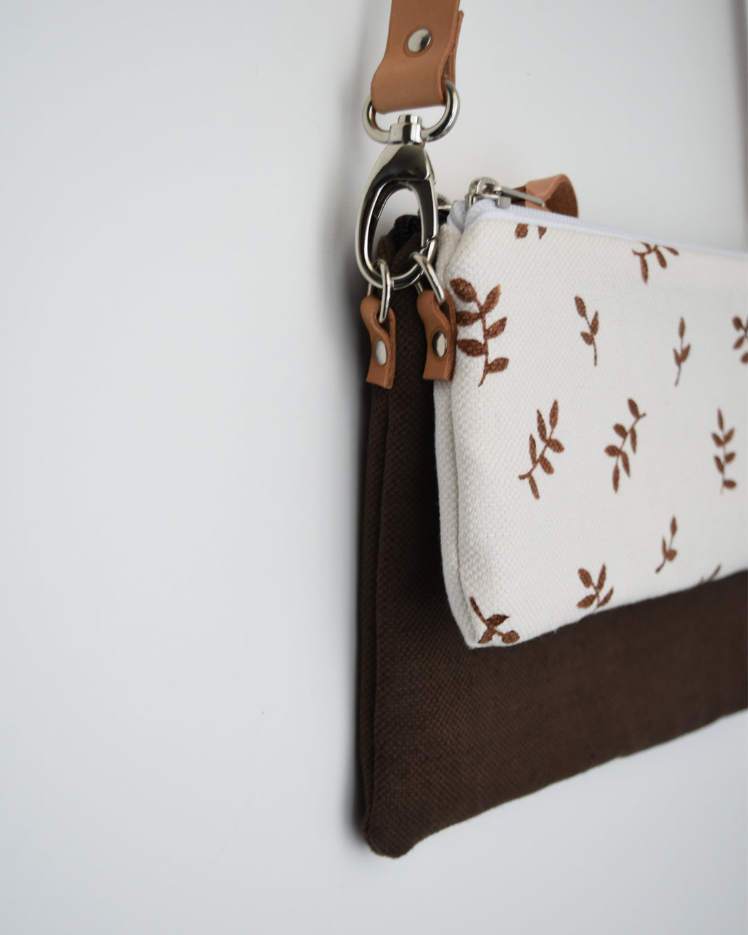 La Camelia è una tracollina doppia costituita da due pochette separate di due dimensioni diverse.