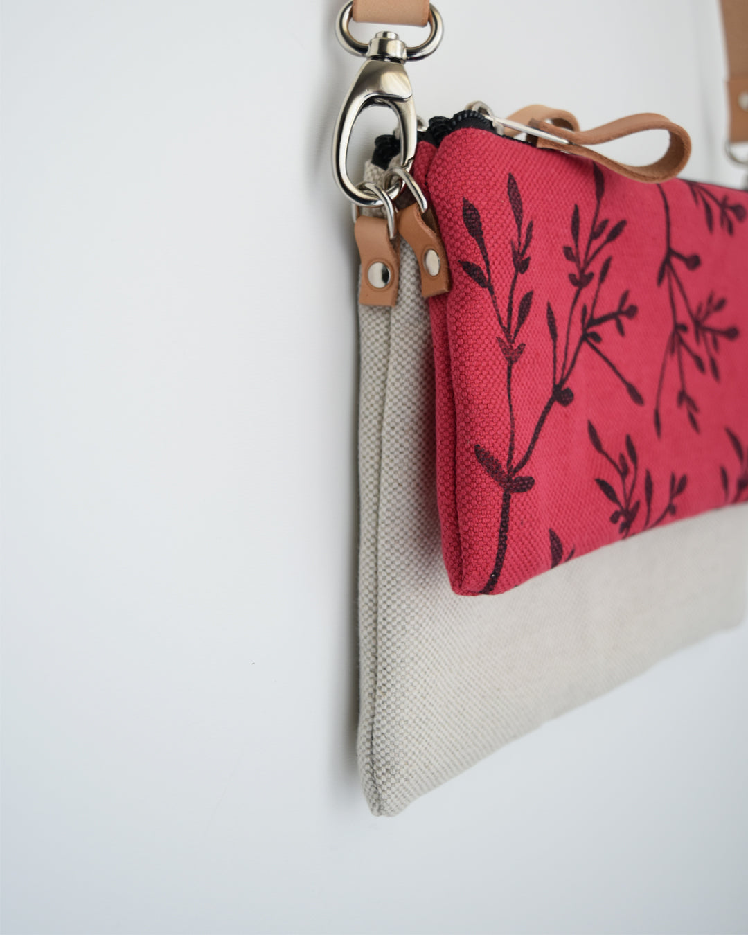 La Camelia è una tracollina doppia costituita da due pochette separate di due dimensioni diverse.